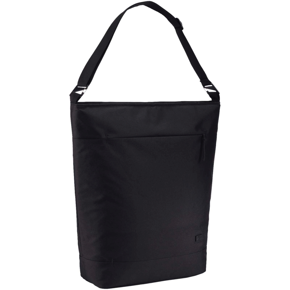 The Case Logic Invigo convertible tote bag has a refined, elegant design with thoughtful organisational features. It is made with 100% recycled 600D polyester exterior and 150D polyester lining. The padded laptop pocket protects a 15.6 laptop and the tablet sleeve can hold a 12.9 tablet. Stow the padded backpack shoulder strap to use the bag as a tote bag, or detach the main shoulder strap to use as a backpack. When using in tote mode, backpack straps stow away cleanly in small designated pocket on back panel. A front panel zip pocket provides easy storage for small accessories and quick access to essential items. In the main compartment there is a designated water bottle storage pocket and on the back panel is a large stash pocket to store even more items. This bag also features a luggage pass-through strap to attach the bag to rolling luggage for effortless travel. Dimensions: 36,5 x 43 x 18 cm