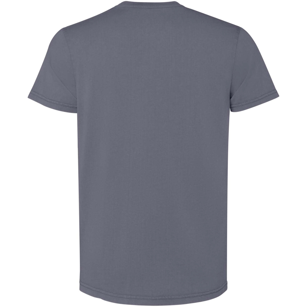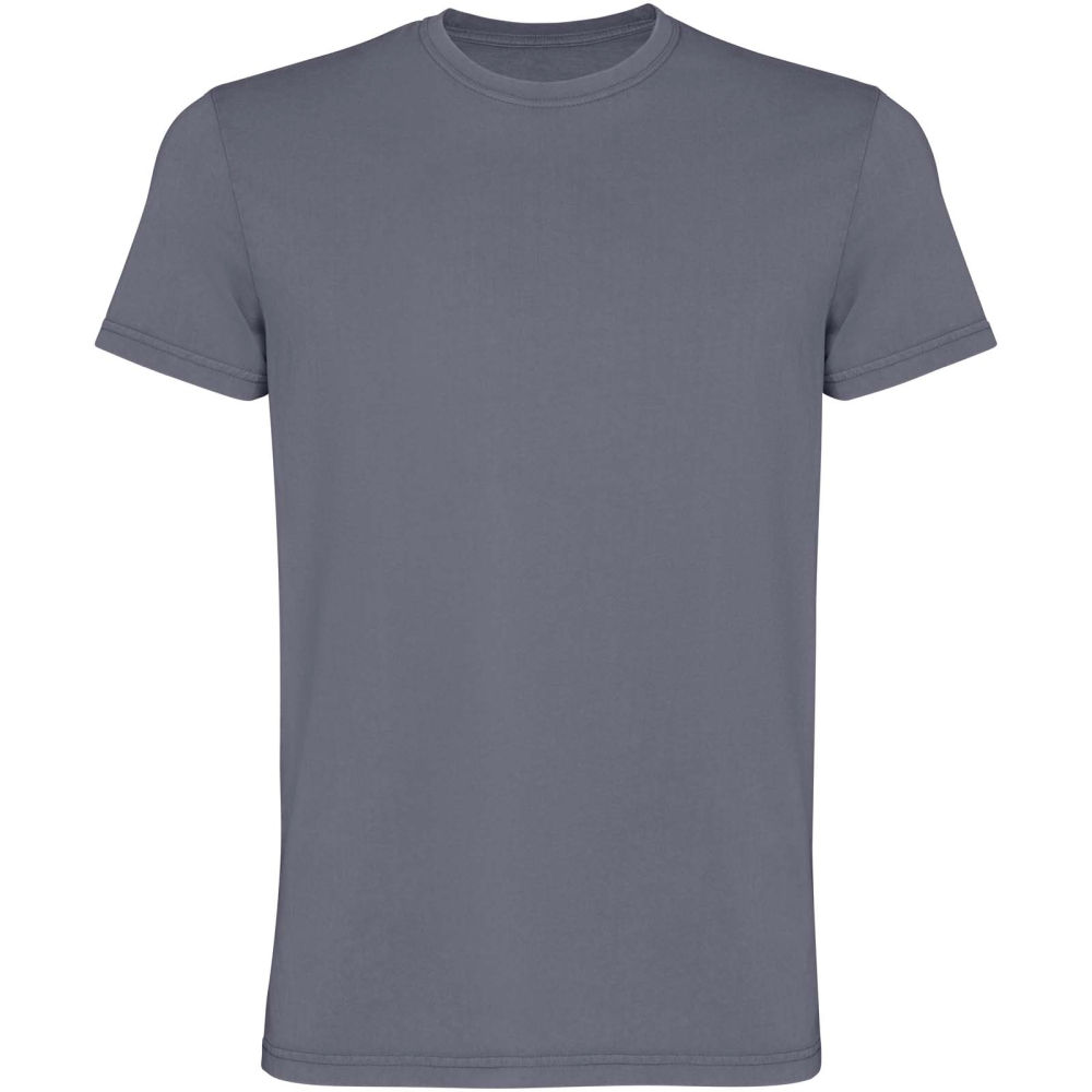 Short sleeve t-shirt for men. Acid-wash finish. 1x1 ribbed crew neck design. Tone-on-tone cover stitch with a polished finish.