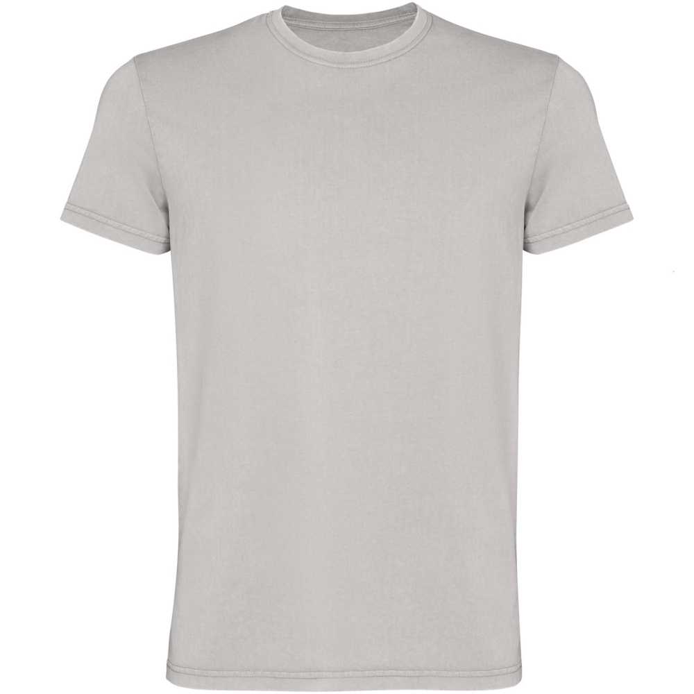 Short sleeve t-shirt for men. Acid-wash finish. 1x1 ribbed crew neck design. Tone-on-tone cover stitch with a polished finish.
