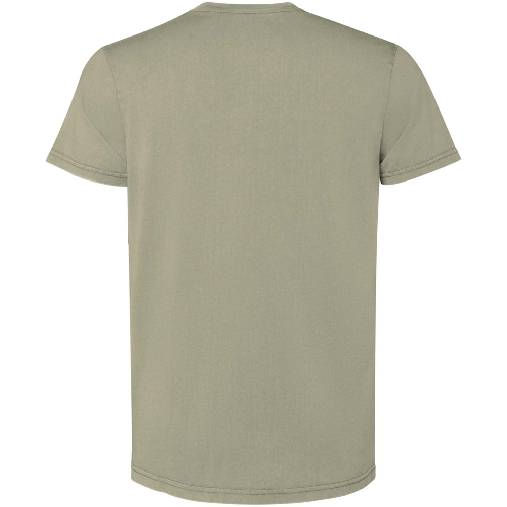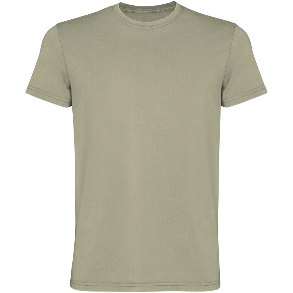 Short sleeve t-shirt for men. Acid-wash finish. 1x1 ribbed crew neck design. Tone-on-tone cover stitch with a polished finish.