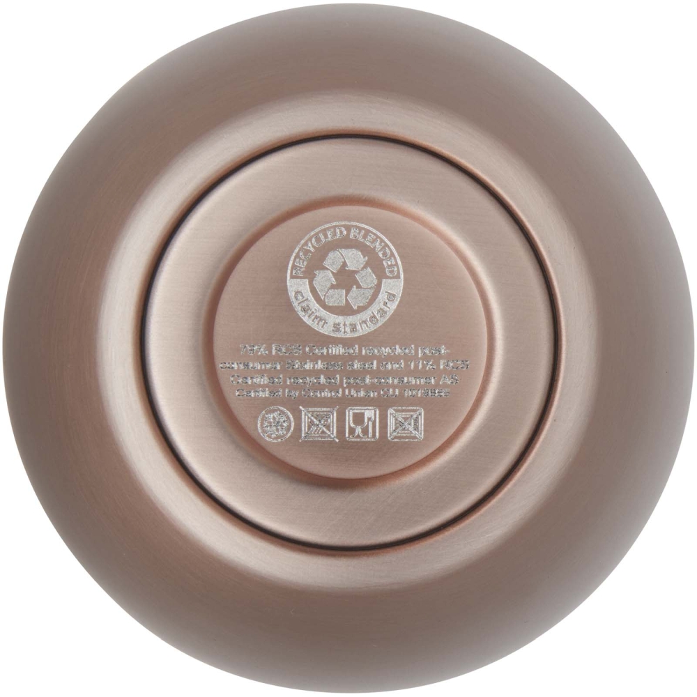 The Corzo is made from RCS certified stainless steel and has a double-walled vacuum construction with copper insulation, which keeps drinks hot for 6 hours or cold for 24 hours. The construction prevents condensation on the outside of the cup. Easy sipping, push-on lid. Features spray powder coating on the outer body. Wide opening for comfortable filling and pouring. Capacity is 350 ml. Presented in recycled cardboard gift box. Dimensions: 11,42 x 8,9 cm