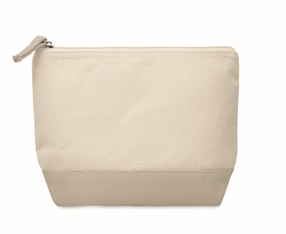 Cosmetic bag in cotton with coloured bottom and matching zipper puller. 340 gr/m2. Dimensions: 21,5 x 5 x 15 cm