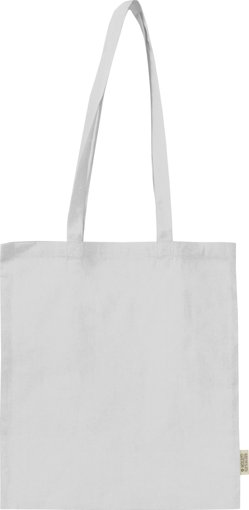 Cotton bag with long handles made from recycled cotton and RPET, white