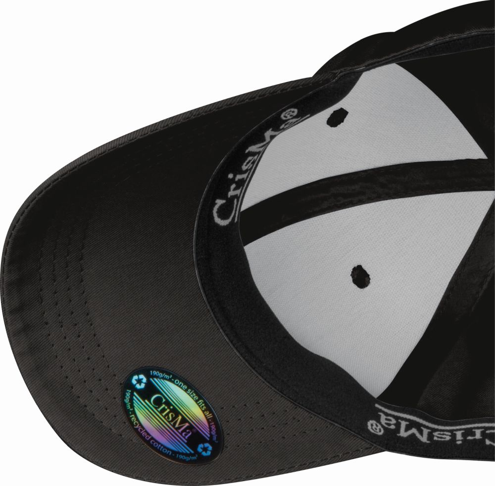 6 panel sandwich CrisMa baseball cap made from recycled 190g/m2 cotton and suitable for almost all sizes thanks to the elasticated fastening. We print your logo on the front.
