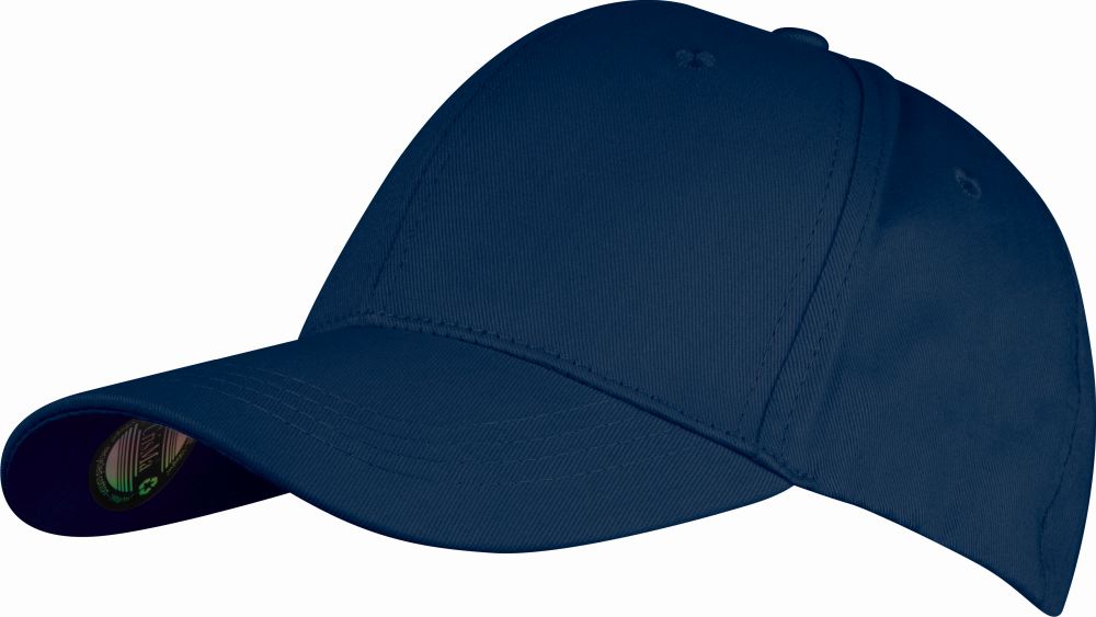 6 panel sandwich CrisMa baseball cap made from recycled 190g/m2 cotton and suitable for almost all sizes thanks to the elasticated fastening. We print your logo on the front.