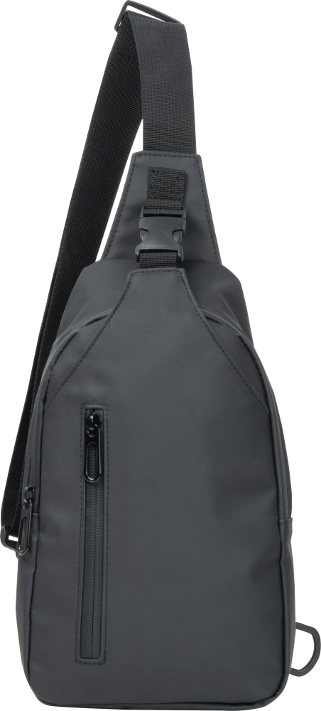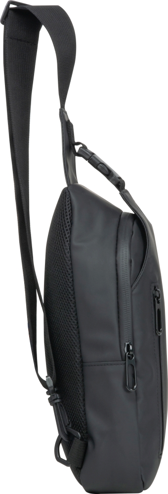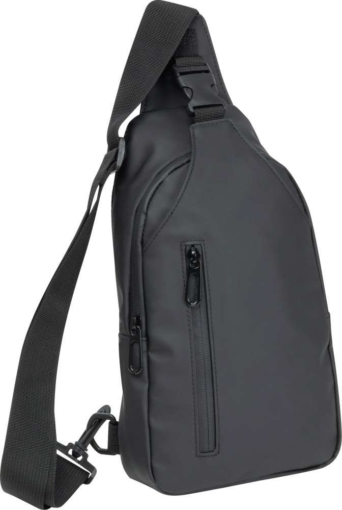 Shoulder bag in a modern crossbody format made from water-repellent PU material with practical zips. The perfect everyday companion. We will print your logo on the front. Dimensions: 18,5 x 5,5 x 46 cm