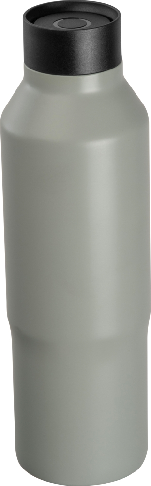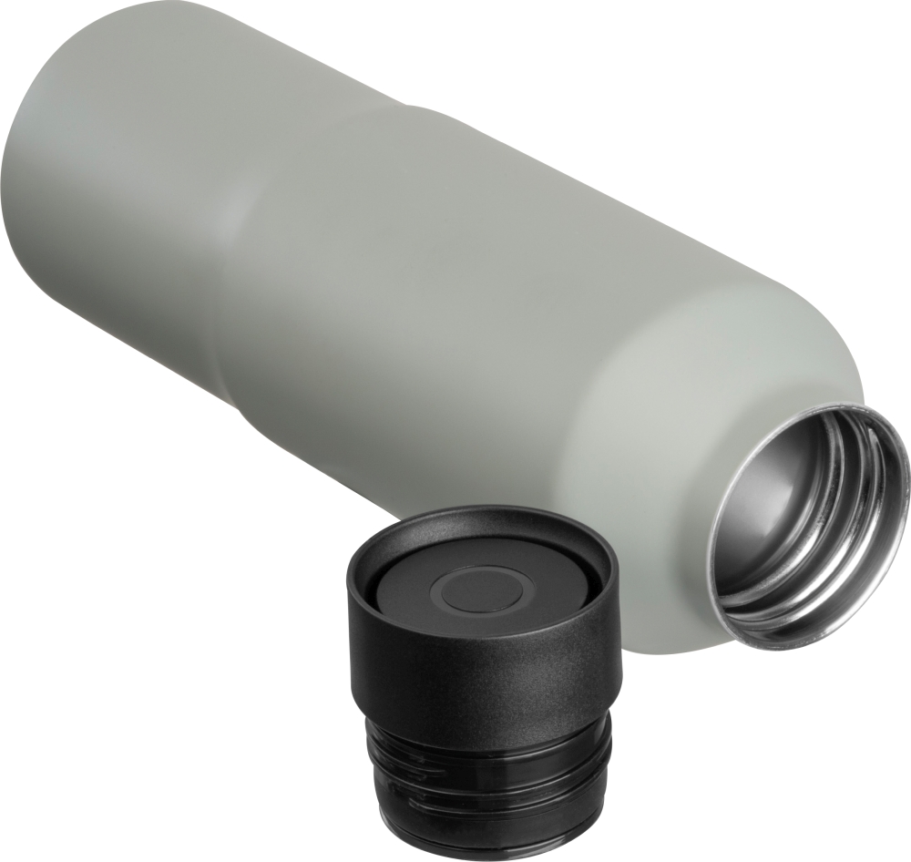 Large double-walled vacuum drinking bottle made from recycled stainless steel with a leak-proof cap and a capacity of 600ml. This bottle is supplied in a black box. Your logo will be engraved on the bottle. Dimensions: o 7 x 24,7 cm