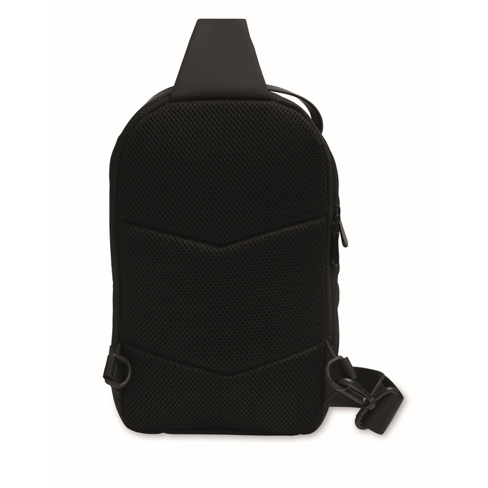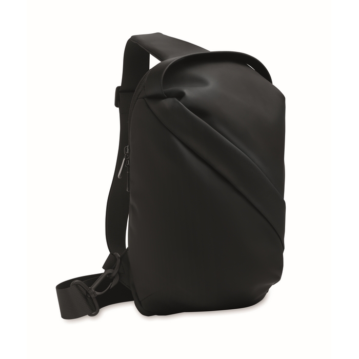 Cross body bag in soft PU with padded back with 210D RPET lining. One large main compartment with zippered front pocket.Dimensions: 19 x 7 x 31cm