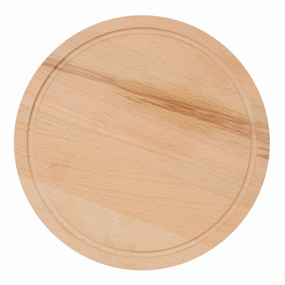 bCutting board WOODEN CIRCLE/b: made of beech wood, with practical drainage groove on the edge - Made in Europe. Dimensions: o 25 x 1 cm