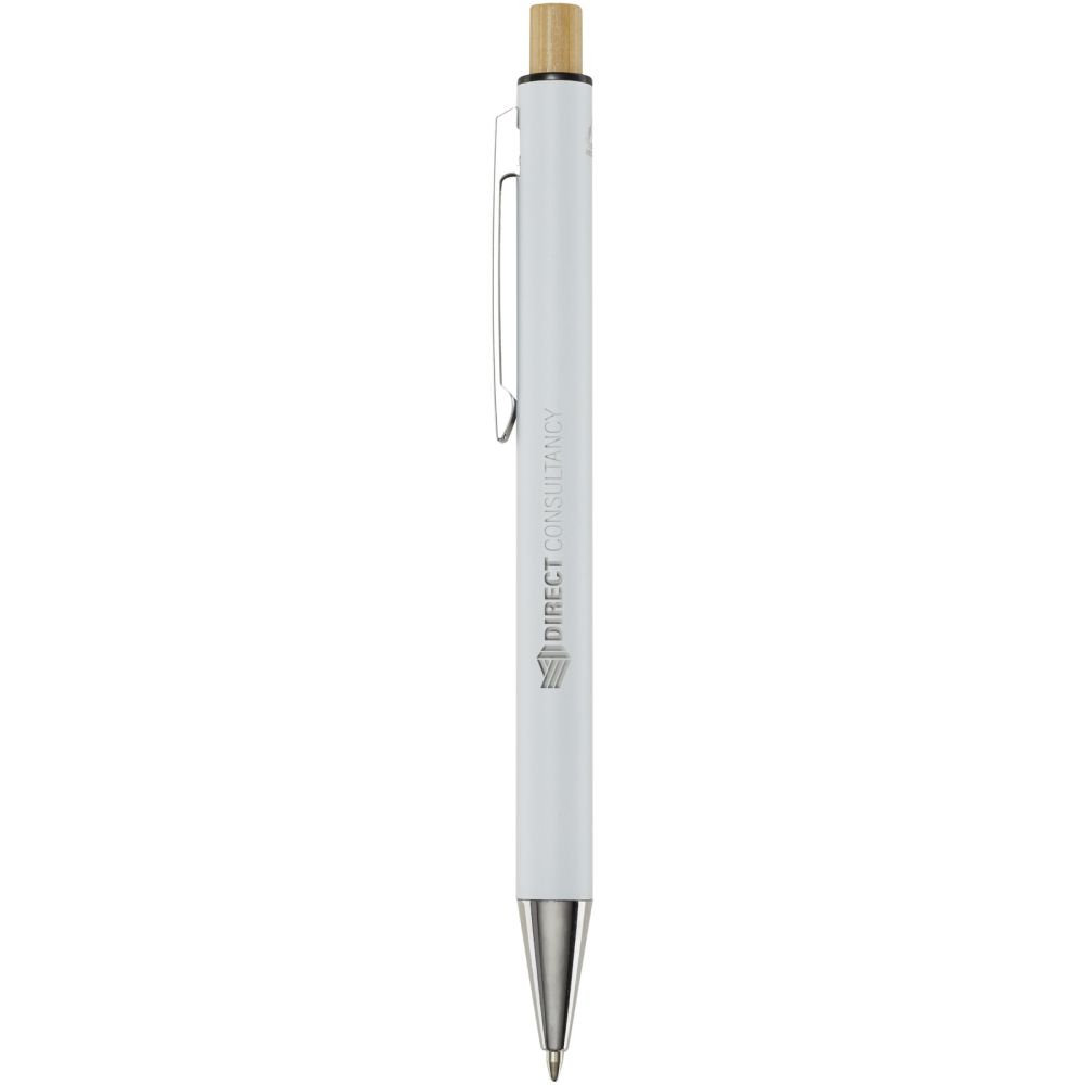 The Cyrus ballpoint pen is made from recycled aluminium, which requires less energy than producing aluminium from raw materials. It also reduces the amount of waste in landfills and helps to conserve natural resources aiming to reduce greenhouse emissions. The push button is made of bamboo. Ink colour: Blue. Writing length: 800 metres. Nib size: 1.00 mm.