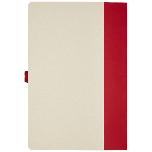 A5 size reference notebook and ballpoint pen set. The notebook features 80 lined sheets (80 g/m2) made from recycled milk cartons (up to 70%), a coloured paper spinal, and a pen loop. In the pen loop, there is a click-action ballpoint pen in matching colour of the notebook. The pen has a barrel made of the same recycled milk carton material and the button, clip, and tip is made of coloured PLA plastic. The pen features a black refill inside. Used milk cartons are collected, sorted, processed, and turned into paper, truly turning waste into something useful.