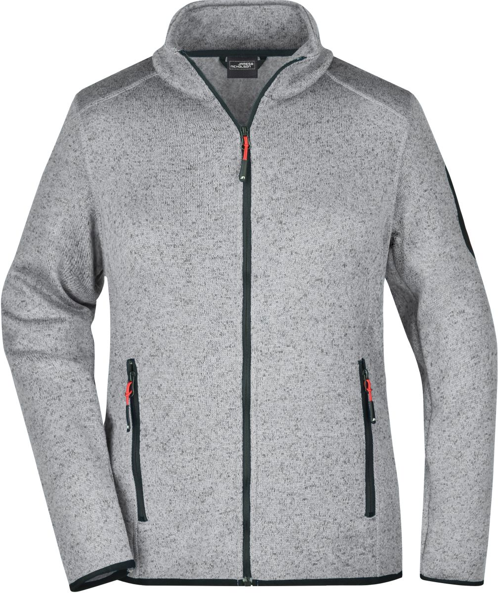 Ladies knitted fleece jacket James Nicholson, grey/red, M