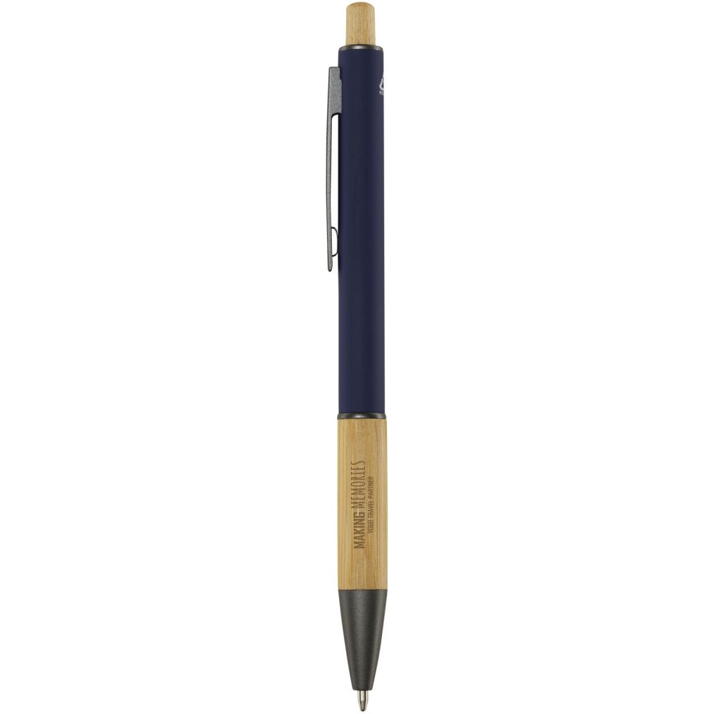 The Darius ballpoint pen is made from recycled aluminium, which requires less energy than producing aluminium from raw materials. It also reduces the amount of waste in landfills and helps to conserve natural resources aiming to reduce greenhouse emissions. The push button and the bottom part of the barrel is made of bamboo. Ink colour: Black. Writing length: 800 metres. Nib size: 1.00 mm.