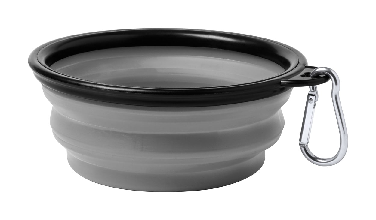 Foldable dog bowl in TPR material with matching colour carabiner, 450 ml.