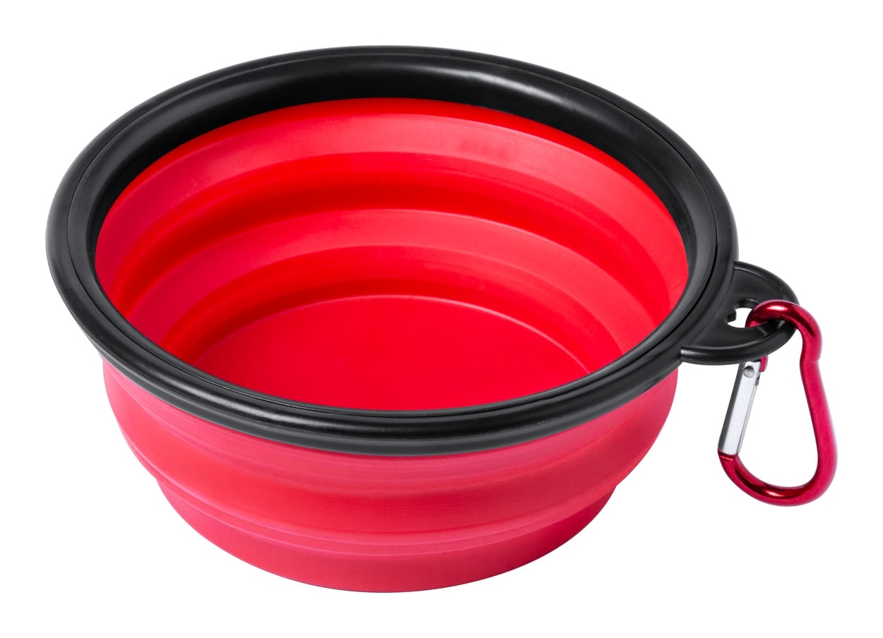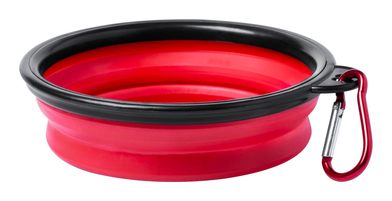 Foldable dog bowl in TPR material with matching colour carabiner, 450 ml.