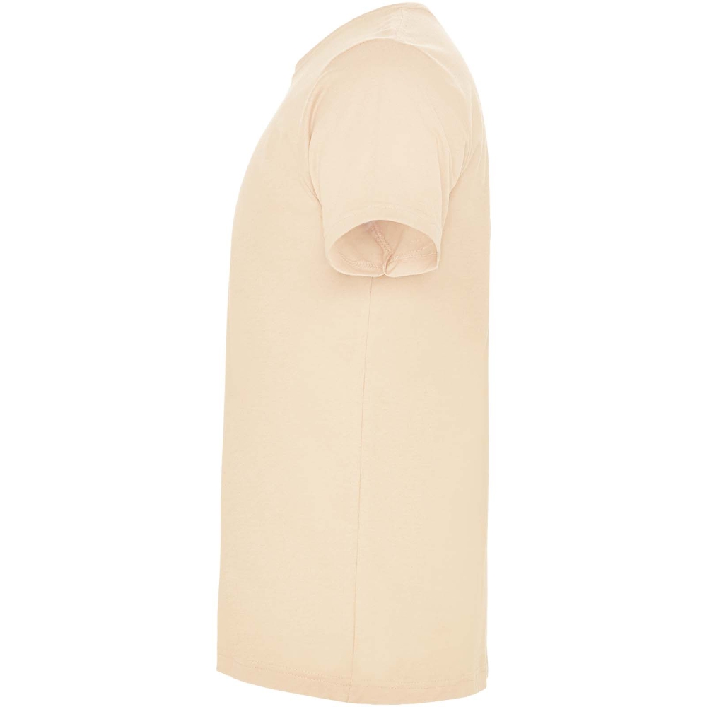 Short-sleeve t-shirt with 4-layer crew neck and reinforced covered seams in collar and shoulders. Side seams. Size 4XL and 5XL only available in certain colours. Removable label.
