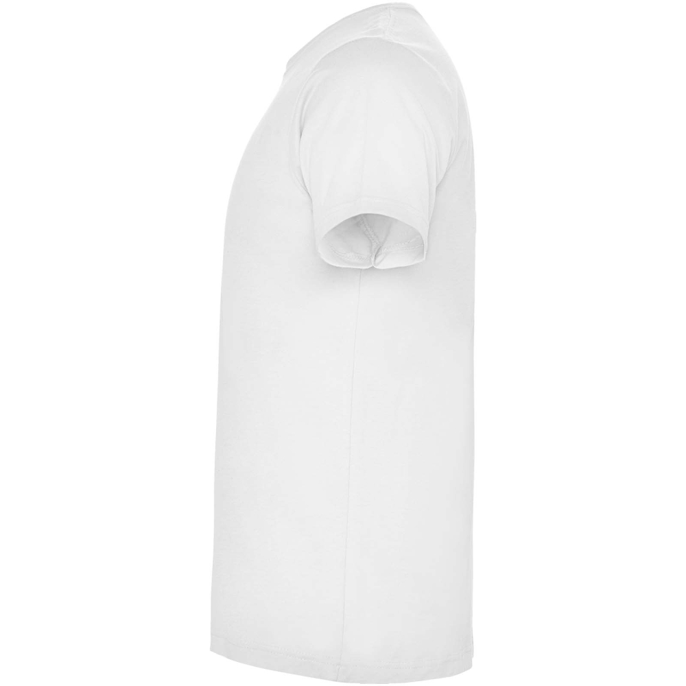 Short-sleeve t-shirt with 4-layer crew neck and reinforced covered seams in collar and shoulders. Side seams. Size 4XL and 5XL only available in certain colours. Removable label.