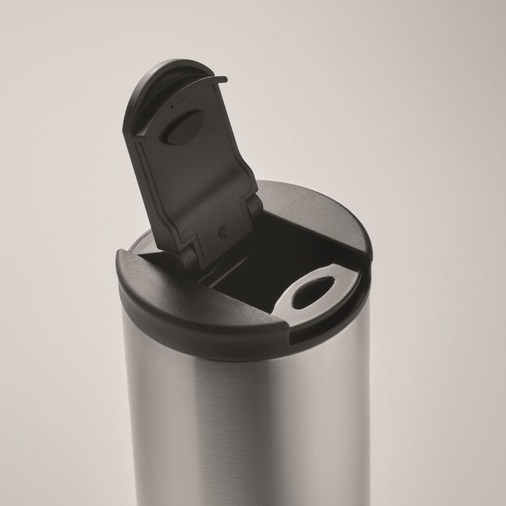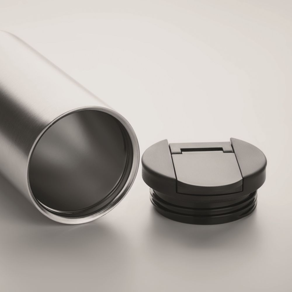 Double wall Stainless Steel insulating vacuum bottle with lid. Capacity 330 ml. Leak free.