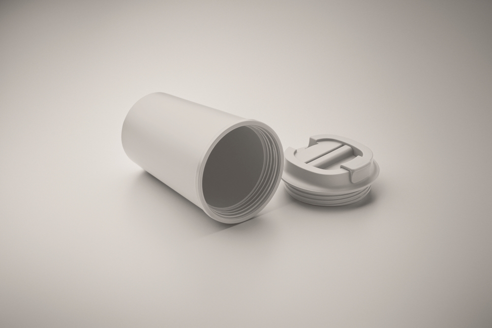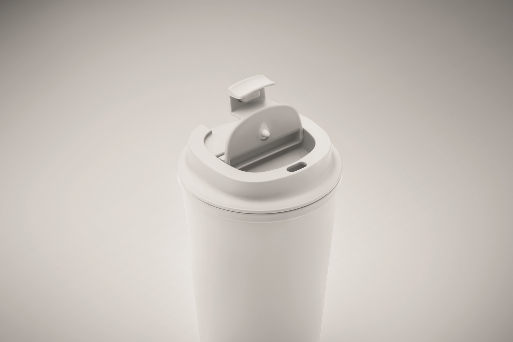Double wall tumbler in 100% PLA corn with recycled PP drinking lid with inner TPR. Leak free. Capacity: 350 ml. Dimensions: O 8.5 x 14 cm