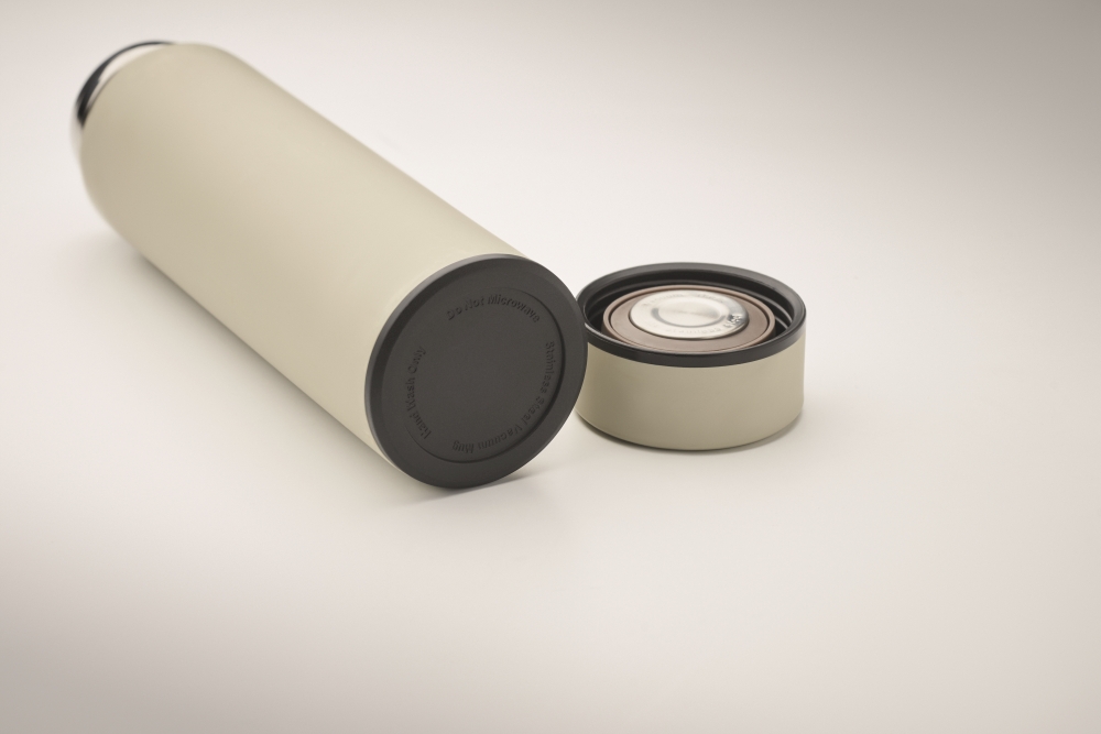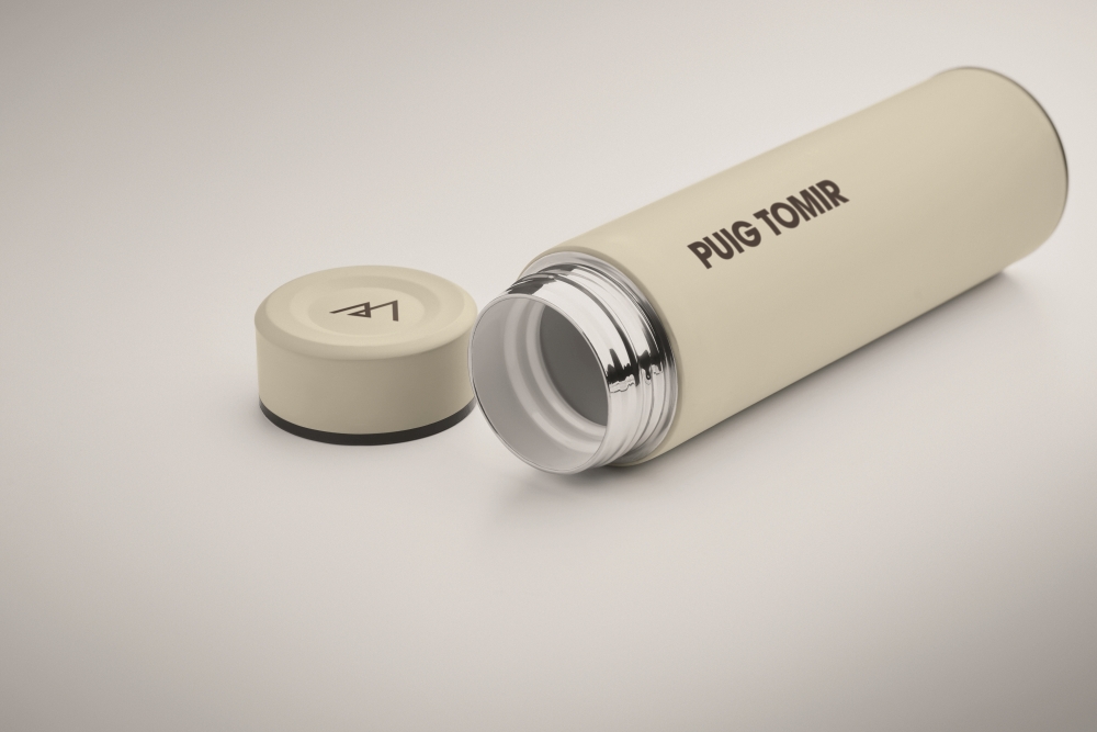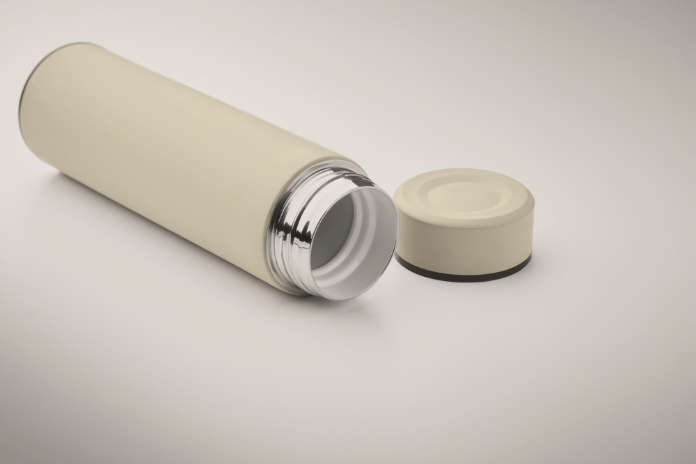 Double wall vacuum insulating bottle in recycled stainless steel (90% recycled stainless steel and 10% stainless steel) with ceramic inner lining. Leak-free. Capacity: 420 ml. Dimensions: O 6 x 22 cm