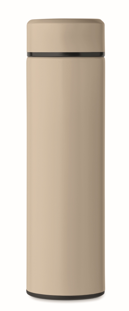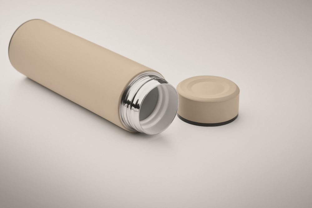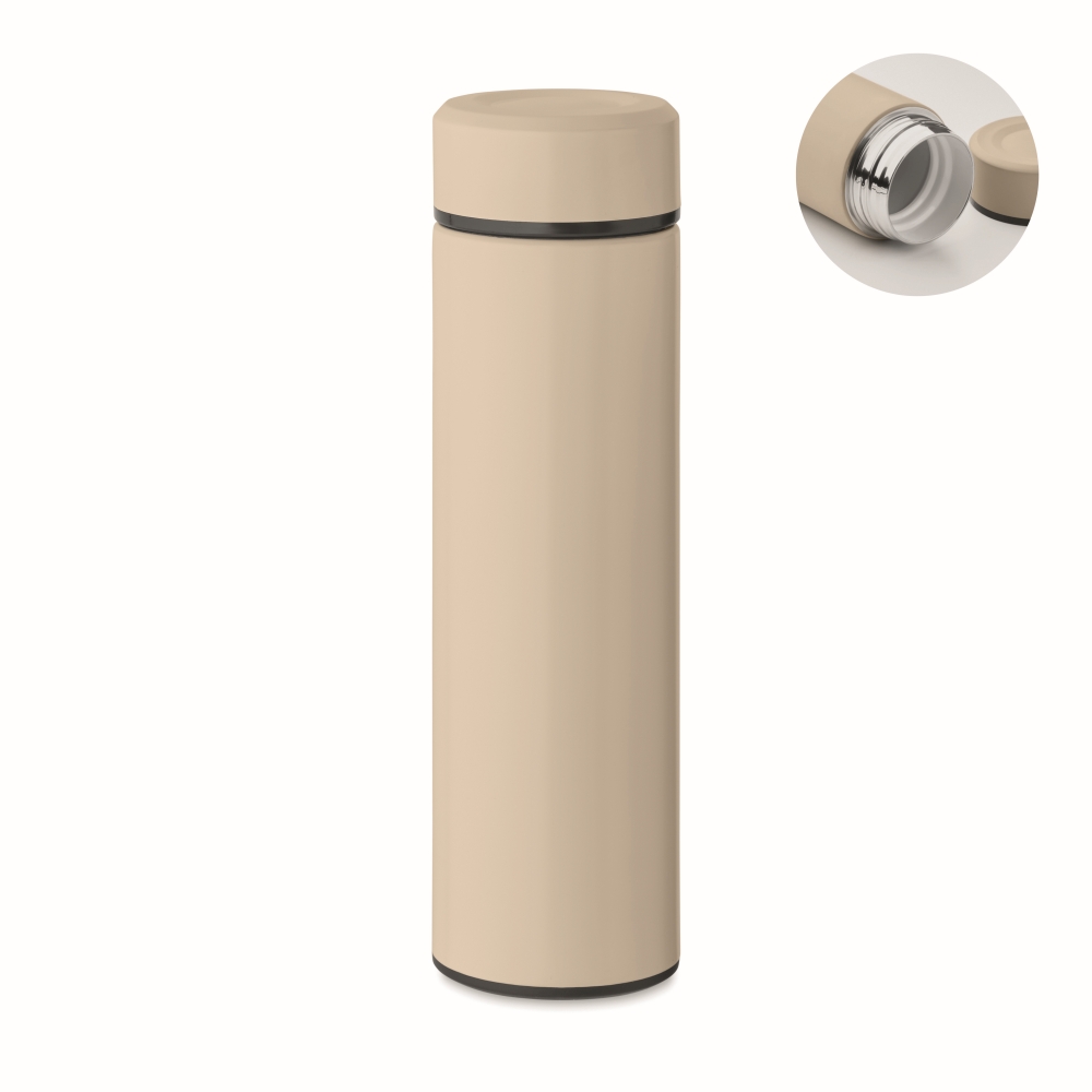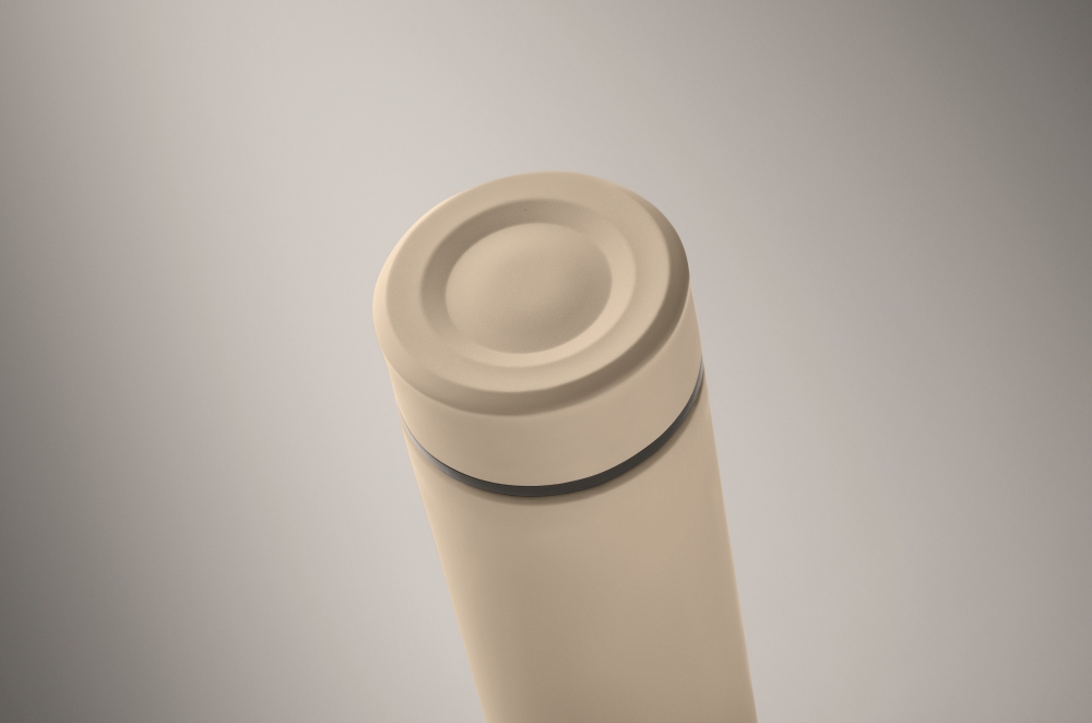 Double wall vacuum insulating bottle in recycled stainless steel (90% recycled stainless steel and 10% stainless steel) with ceramic inner lining. Leak-free. Capacity: 420 ml. Dimensions: O 6 x 22 cm