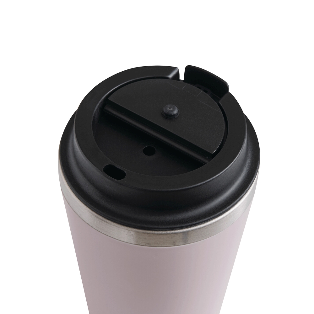 Double-walled travel mug: made of stainless steel on the inside and plastic on the outside, secure screw-on plastic lid with integrated drinking opening and silicone seal, capacity approx. 350 ml, keeps warm for approx. 2 hours and cold for up to 4 hours. Dimensions: O9 x 15 cm
