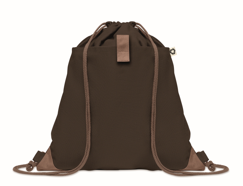 220 gr/m2. Drawstring bags are great for daily usage to bring your items to work, school or the gym. This bag has contrasting corners for a stylish design element. 50% cotton and 50% recycled cotton. Carry weight limit 2.5kgs. Dimensions: 38 x 42 cm