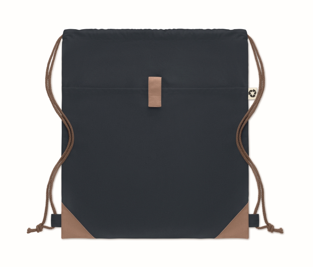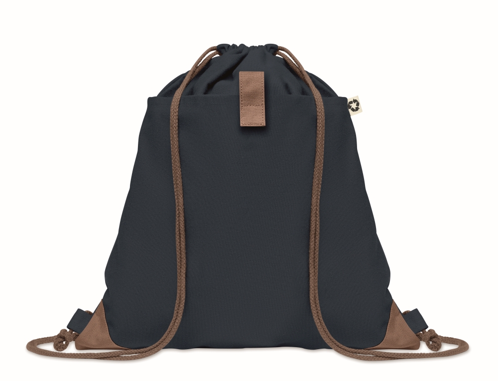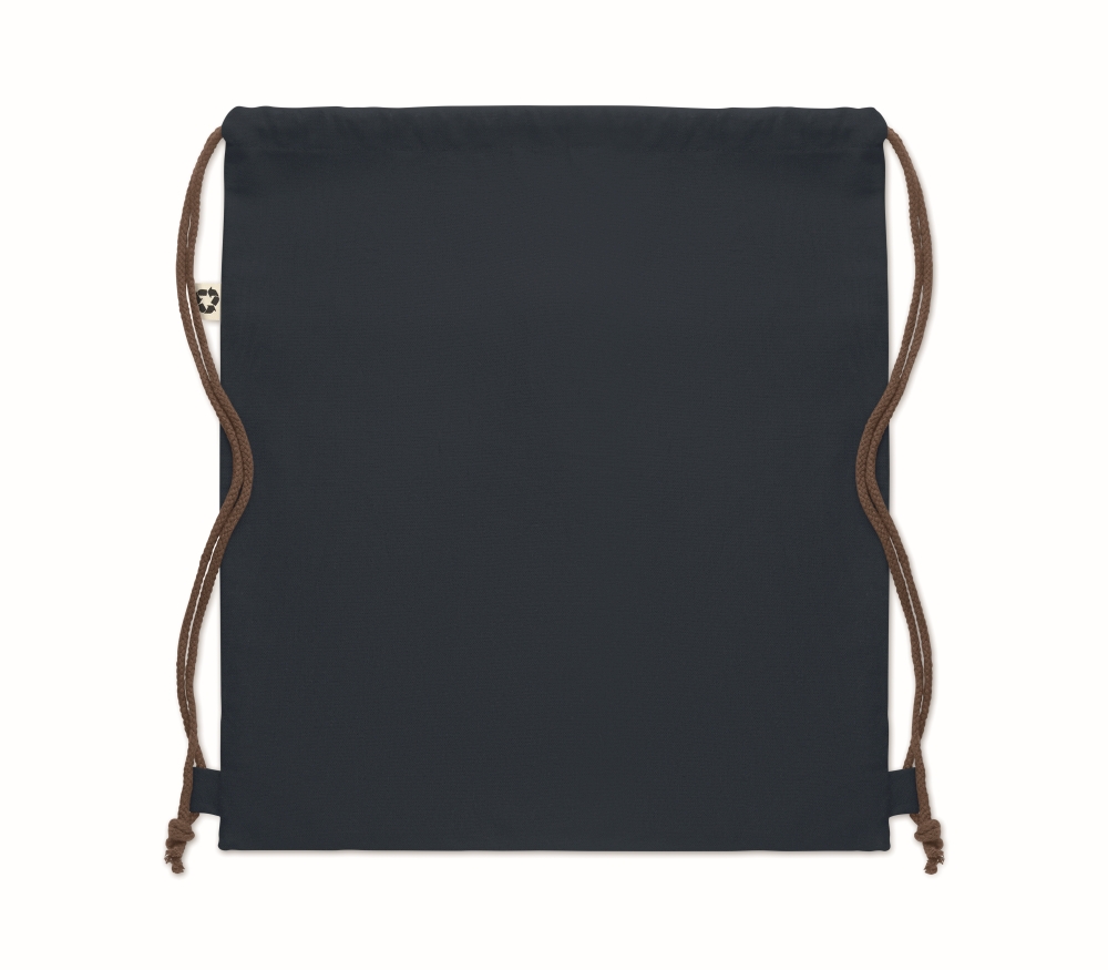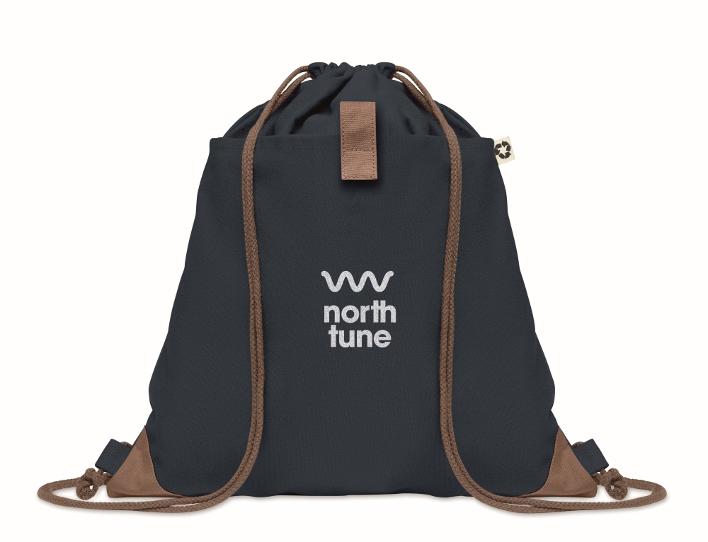 220 gr/m2. Drawstring bags are great for daily usage to bring your items to work, school or the gym. This bag has contrasting corners for a stylish design element. 50% cotton and 50% recycled cotton. Carry weight limit 2.5kgs. Dimensions: 38 x 42 cm