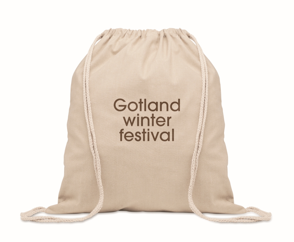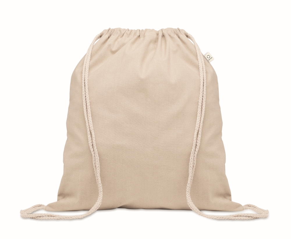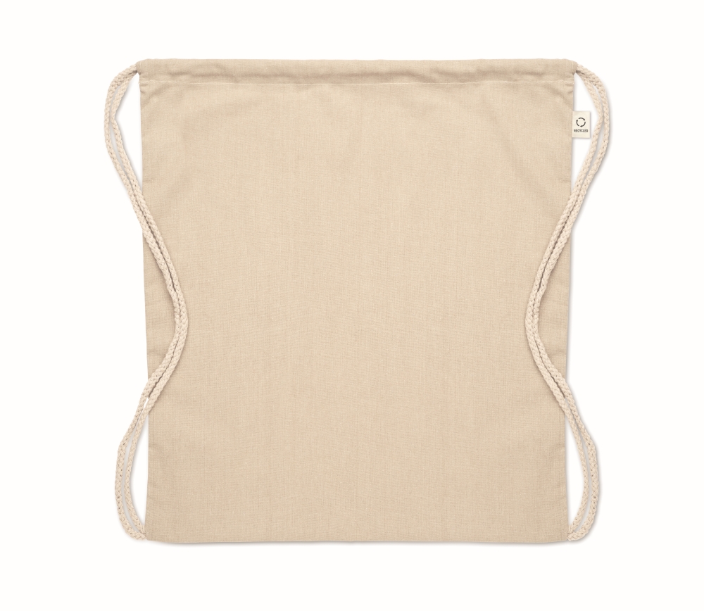 Drawstring bag in recycled pre-consumer cotton (70 %) and RPET (30%) 140 gr/m2. Dimensions: 37 x 41 cm
