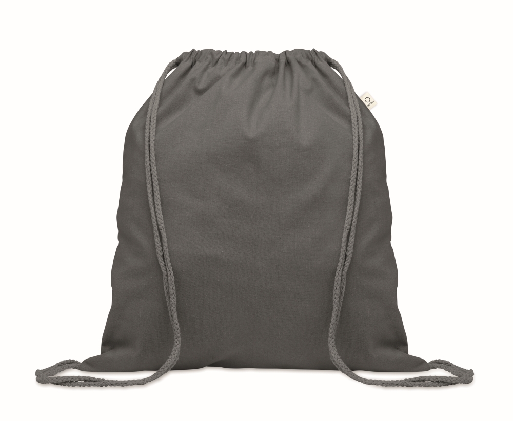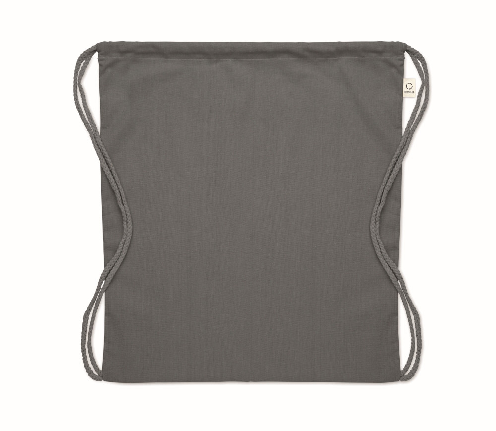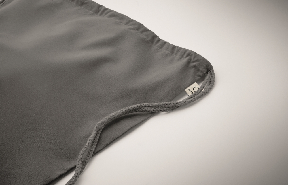 Drawstring bag in recycled pre-consumer cotton (70 %) and RPET (30%) 140 gr/m2. Dimensions: 37 x 41 cm