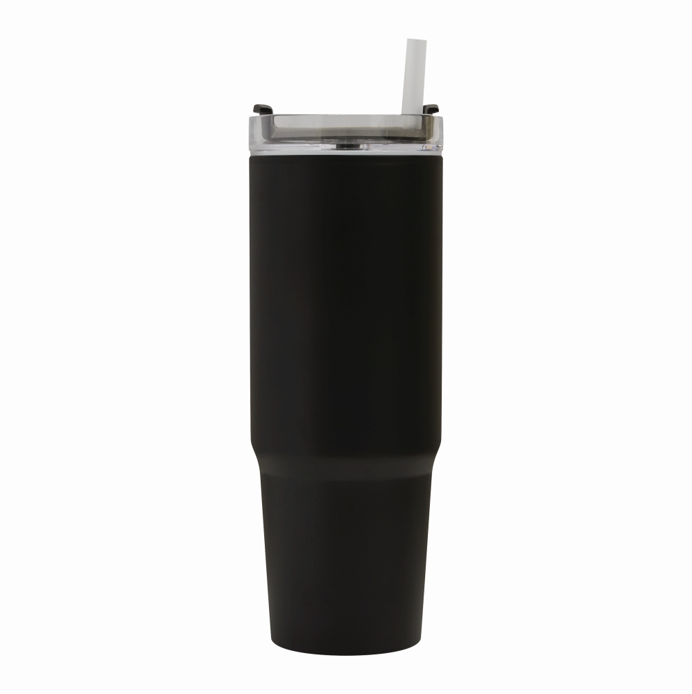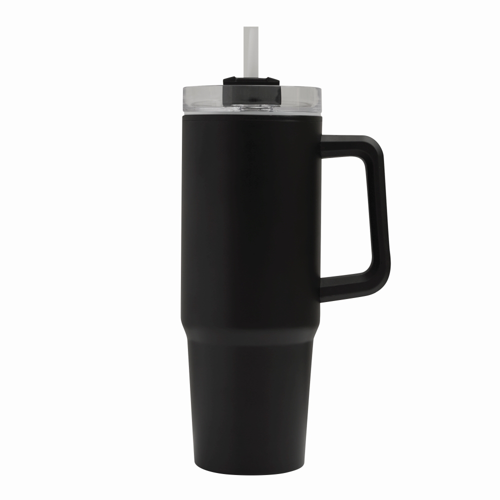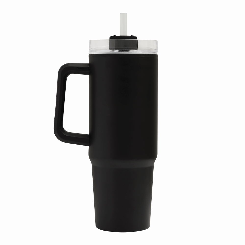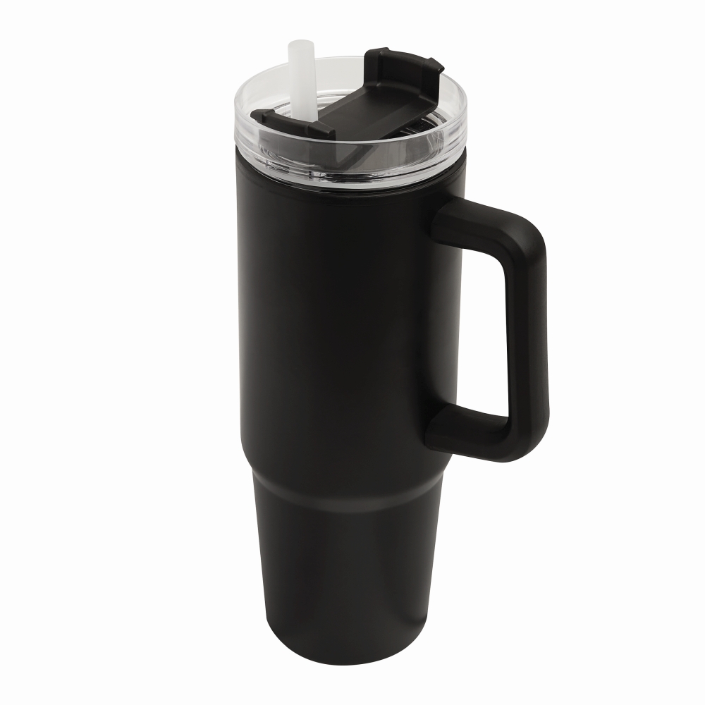 bDrinking cup DRINK ULTY/b, double-walled: plastic on the inside and stainless steel on the outside, with practical handle, transparent plastic lid with secure screw cap, silicone sealing ring, drinking opening with screw cap and transparent straw, capacity approx. 900 ml. Dimensions: o 8,8 x 24 cm