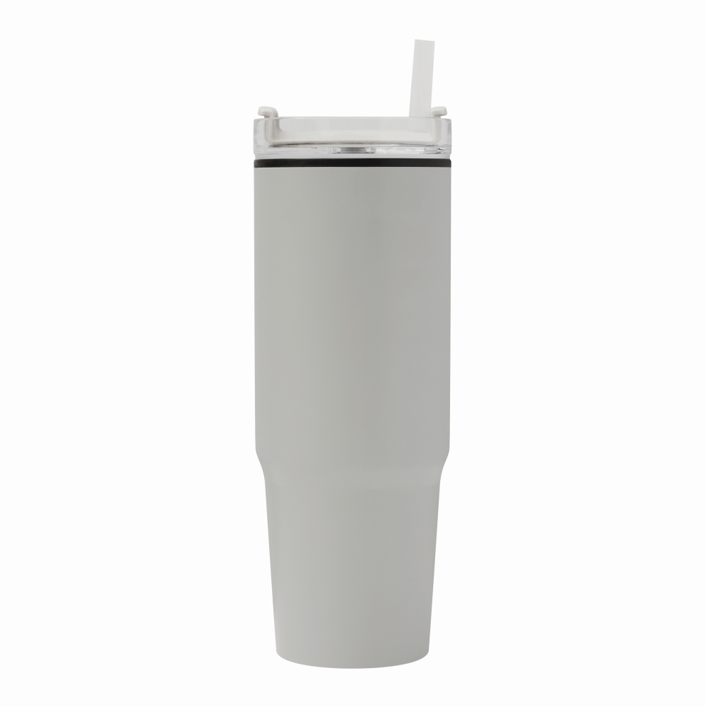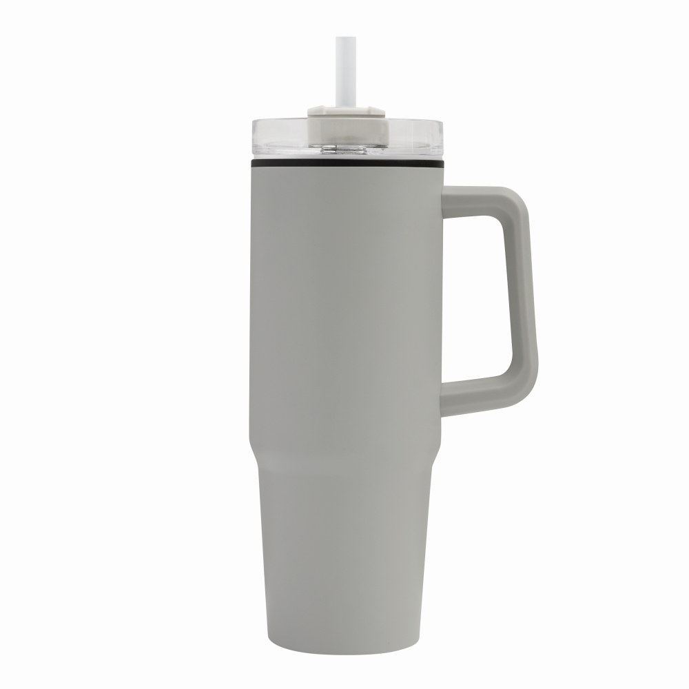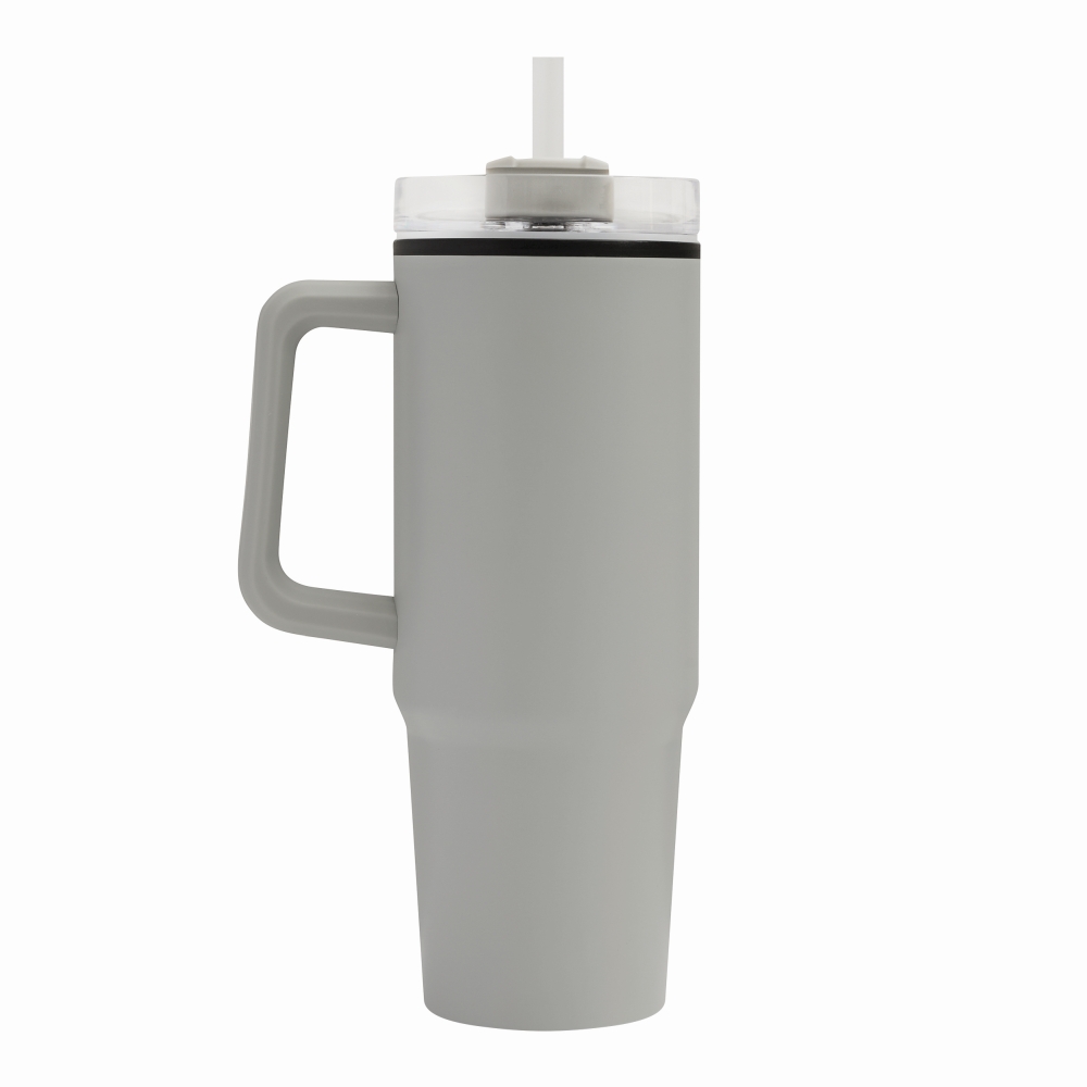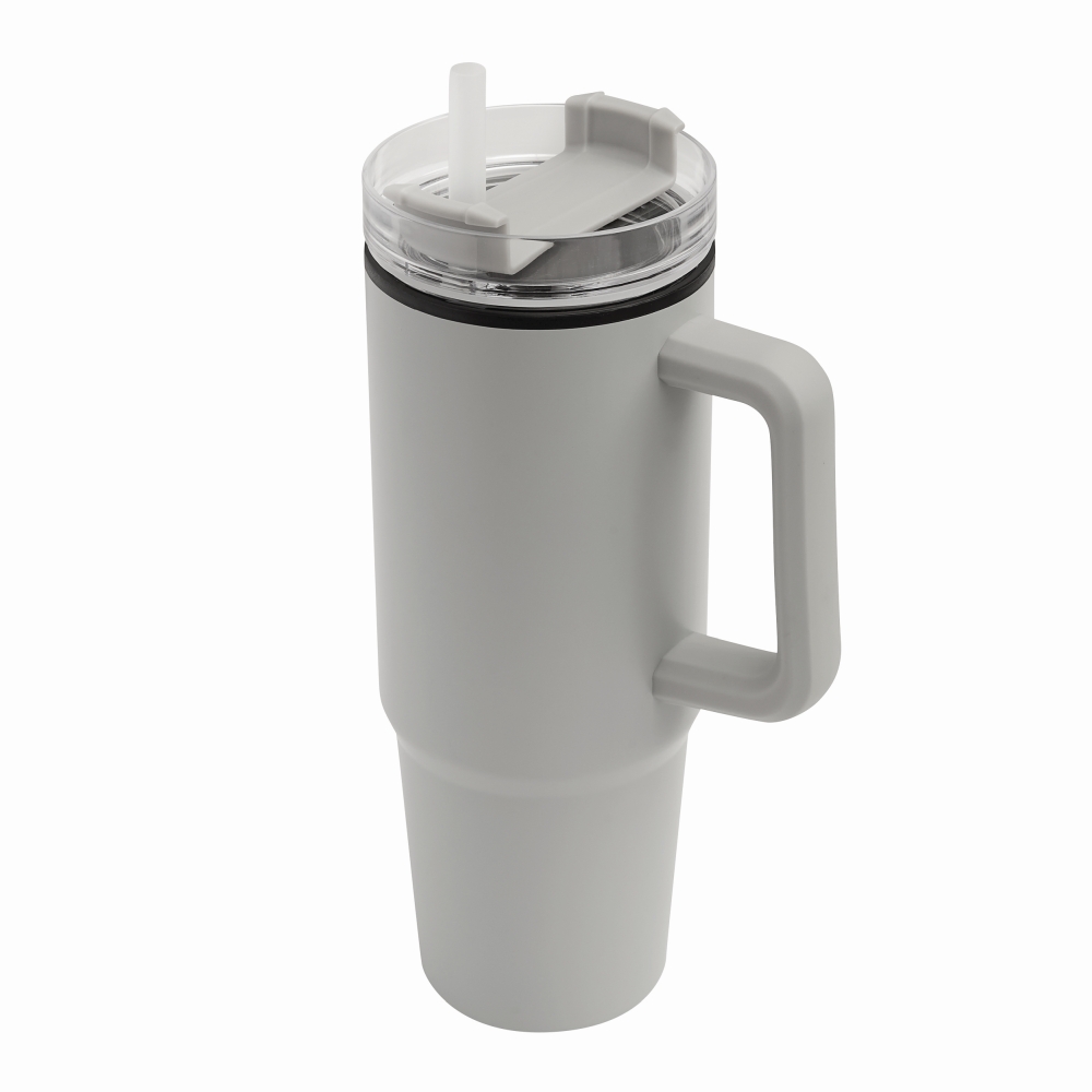 bDrinking cup DRINK ULTY/b, double-walled: plastic on the inside and stainless steel on the outside, with practical handle, transparent plastic lid with secure screw cap, silicone sealing ring, drinking opening with screw cap and transparent straw, capacity approx. 900 ml. Dimensions: o 8,8 x 24 cm