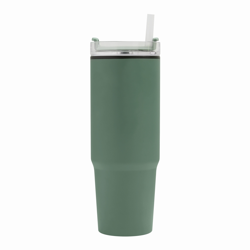 bDrinking cup DRINK ULTY/b, double-walled: plastic on the inside and stainless steel on the outside, with practical handle, transparent plastic lid with secure screw cap, silicone sealing ring, drinking opening with screw cap and transparent straw, capacity approx. 900 ml. Dimensions: o 8,8 x 24 cm