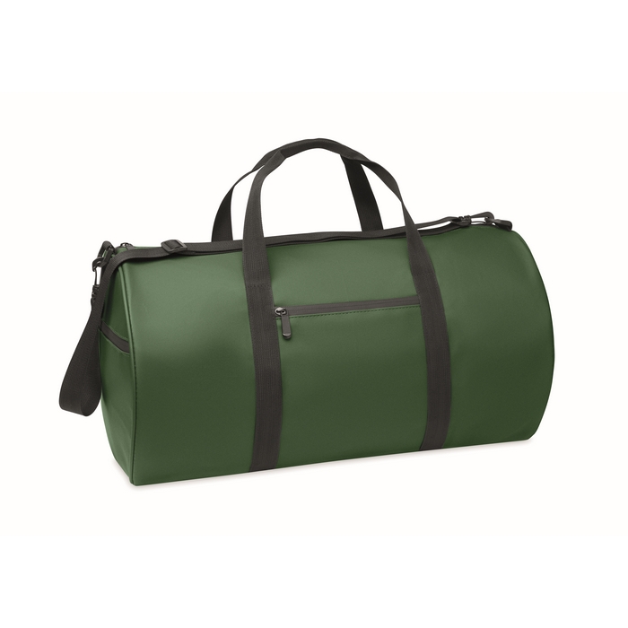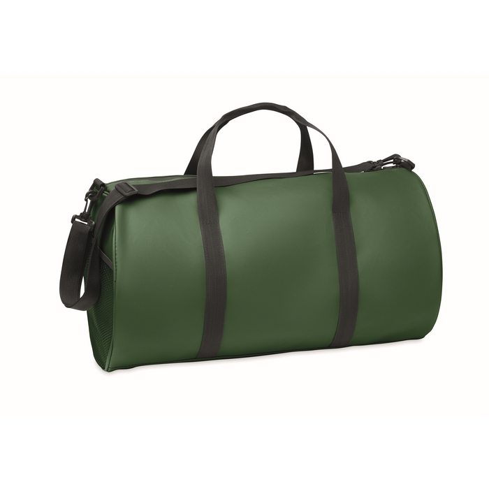 Duffle bag in 600D RPET polyester with PU coating. Front zippered pocket. Inside 210D RPET polyester lining. 1 side zippered compartment / 1 side mesh compartment. Zippered pocket inside.Dimensions: 51 x 28cm