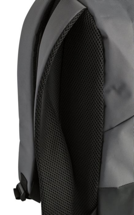 500D Two Tone backpack. Adjustable and ventilated lining for the back and shoulder straps. Large zip compartment with a laptop pocket for 15 inches. Dimensions: 28 x 15 x 43 cm.