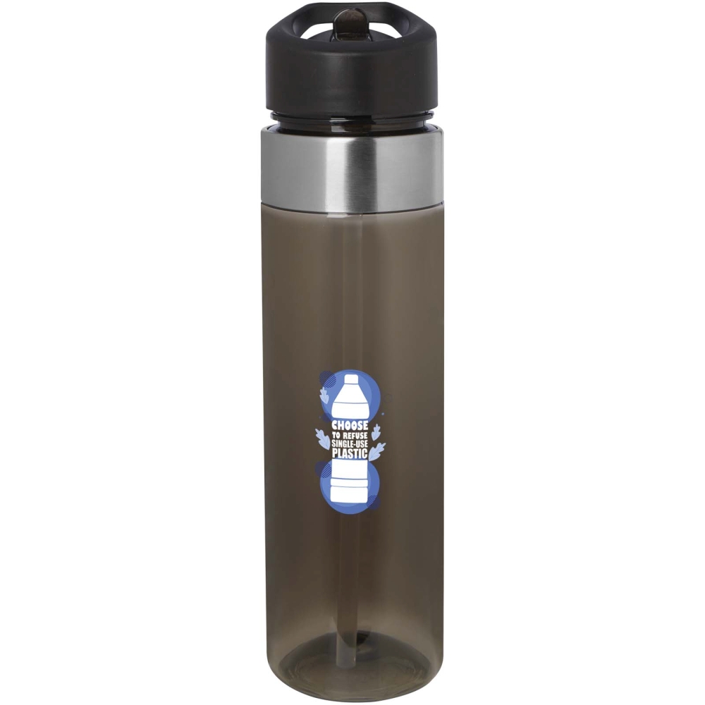 Water bottle with 650 ml capacity and a convenient flip spout for easy drinking. Made from durable Tritan material with stainless steel details on the top of the bottle. Dimensions: 24,5 x O 6,7 cm