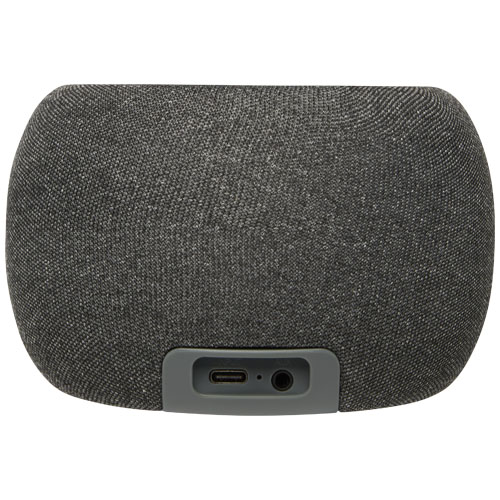 A more sustainable choice! The 3W Ecofiber speaker produces crystal clear sound by Bluetooth® or AUX connection, making it perfect for the office or at home. The trendy mixed material look of the bamboo and recycled fabric wrap will catch everyones attention. The top part of the speaker also functions as a 10W wireless charging pad, capable of charging any wireless charging compatible device. The built-in 1200 mAh battery will keep the music playing for up to 6 hours. Built-in music control and microphone for hands-free operation. Comes with a 90 cm TPE 2A USB-A to Type-C charging cable. Bluetooth® working range is 10 meters (33ft). Bluetooth® version 5.3. Delivered with a kraft paper gift box and instruction manual.