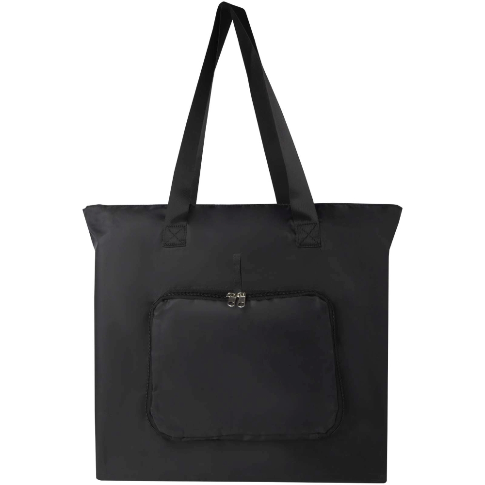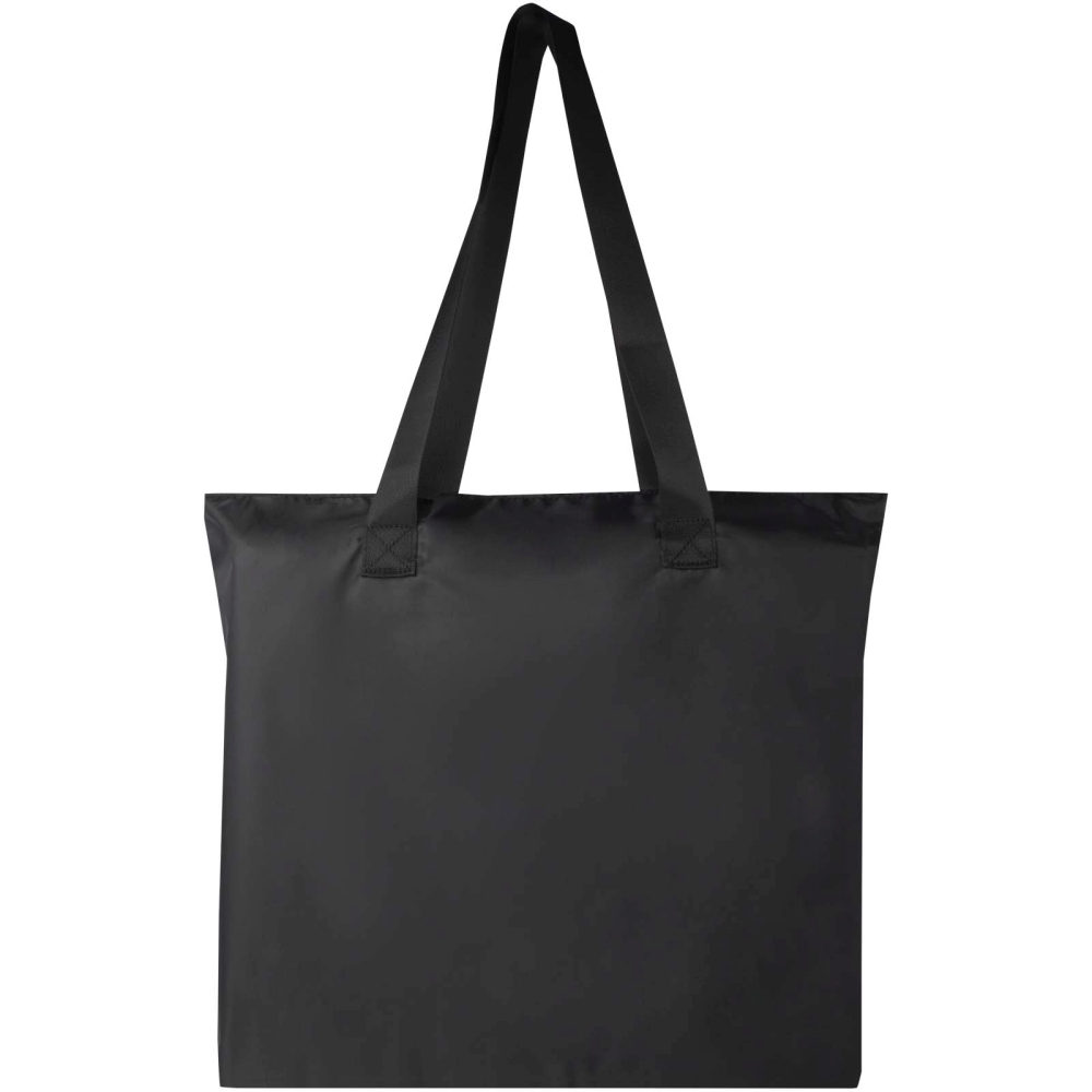 Designed for convenience and practicality, this lightweight yet durable tote bag adapts to your needs by folding neatly into a compact pouch with a webbing loop to hang or carry around easily, making it perfect for busy days, spontaneous shopping trips, or as a backup bag. Featuring a zipped main spacious compartment, a zipped front pocket, and two long handles made of quality smooth webbing material. Made of PVC free recycled polyester. Volume capacity: 16 litres. Dimensions: 48 x 37 x 12 cm