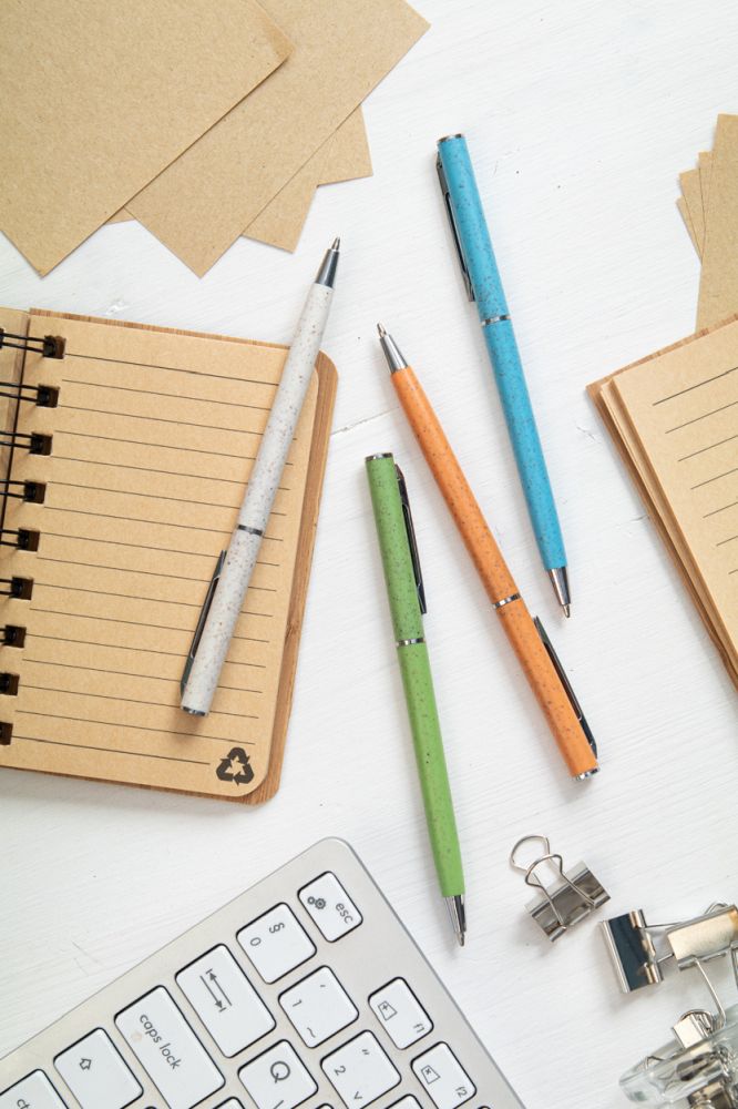 Ecological wheat straw plastic twist ballpoint pen with chrome details. With blue refill.