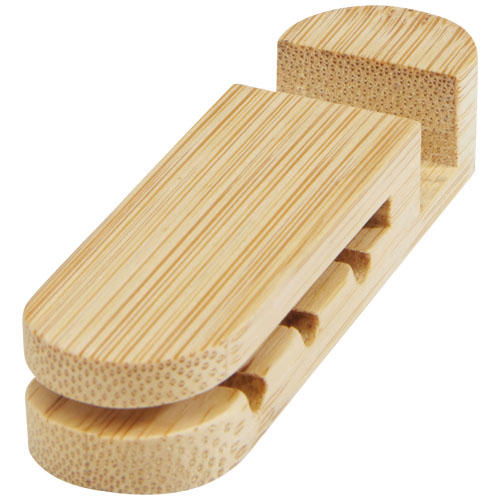 Bamboo cable manager to keep cables neat and organized. It also functions as a phone stand, making it the perfect desk accessory. Size: 90 x 24 x 18 mm. Delivered in a gift box made of sustainable material.