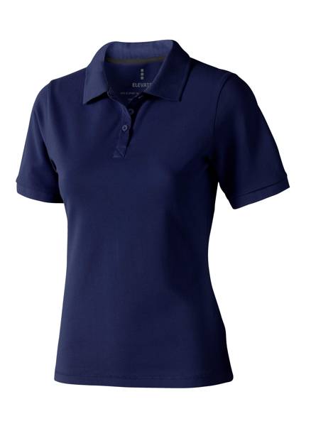 Calgary ladies polo. Pre-shrunk. 1x1 rib collar and cuffs. Tonal logo print at back. Forwarded shoulder seam with chain stitching. Satin neck tape. Side slit with satin tape on inside. Mens and Kids 2 button placket with engraved buttons. Ladies 3 button placket with engraved buttons. Corporate yet casual polo. Pick-Stitch details. Pique knit, 100% Cotton. 200 gsm