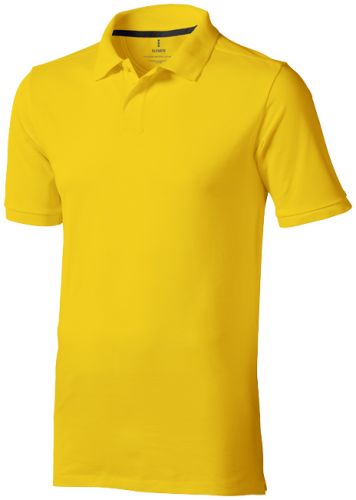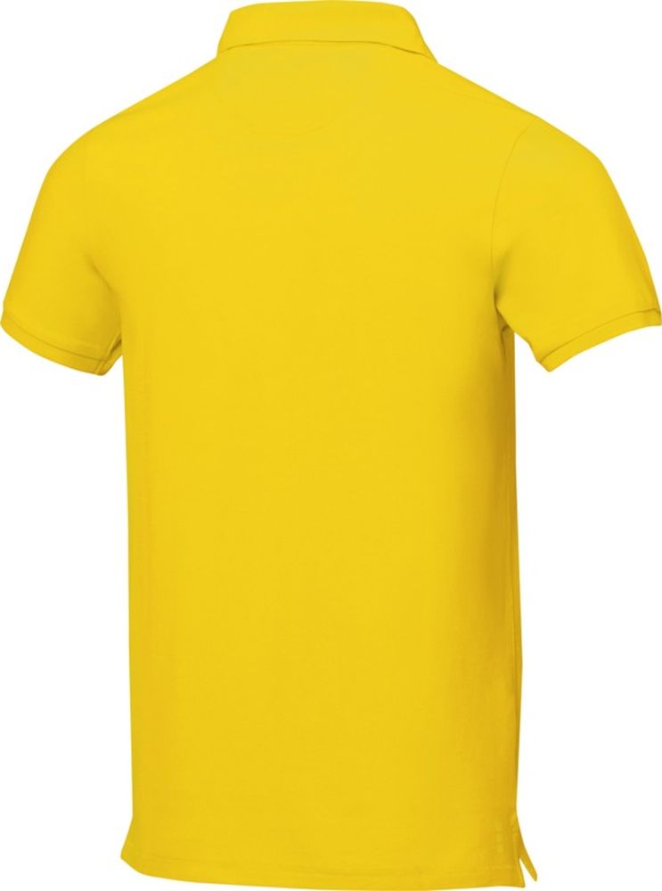 Calgary polo. Pre-shrunk. 1x1 rib collar and cuffs. Satin neck tape. Side slit with satin tape on inside. Forwarded shoulder seam with chain stitching. Tonal logo print at back. Mens and Kids 2 button placket with engraved buttons. Ladies 3 button placket with engraved buttons. Corporate yet casual polo. Pick-Stitch details. Pique knit, 100% Cotton. 200 gsm