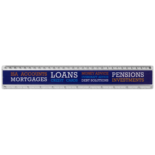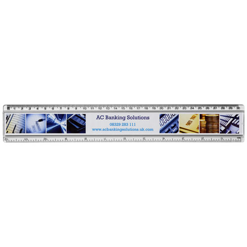 Paper insert plastic ruler with both markings in inches and centimetres.