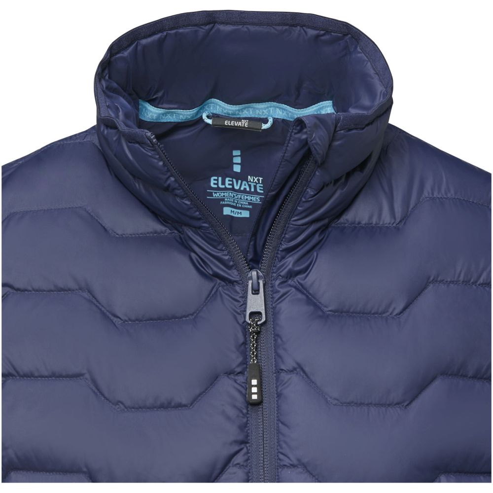 The Epidote womens GRS recycled insulated bodywarmer – a sustainable and stylish outerwear choice for environmentally-conscious adventurers. Crafted with precision and care, this bodywarmer is fully GRS certified, making it a more sustainable addition to your wardrobe. Designed for comfort and warmth, the honeycomb quilted pattern shows a modern design and enhances insulation, while the GRS certified recycled nylon dull cire 380T woven fabric provides durability and weather resistance. Even the trims and accessories, including zippers, are thoughtfully sourced from recycled materials, ensuring every aspect of this bodywarmer contributes to a greener planet. Equipped with practical features, the Epidote bodywarmer has front pockets with zippers and an inside left bottom pocket for secure storage. The inner stormflap with chin guard shields you from the elements, while the elastic drawstring with adjustable cord lock in the bottom hem allows for a customised fit. The elastic binding on the hood ensures added protection against cold winds. The RDS certified recycled feathers provides warmth without compromising on ethical standards. With GRS certification guaranteeing a 100% certified supply chain, this garment truly represents an environmentally conscious choice. This bodywarmer is designed with a fitted shape for a feminine look.