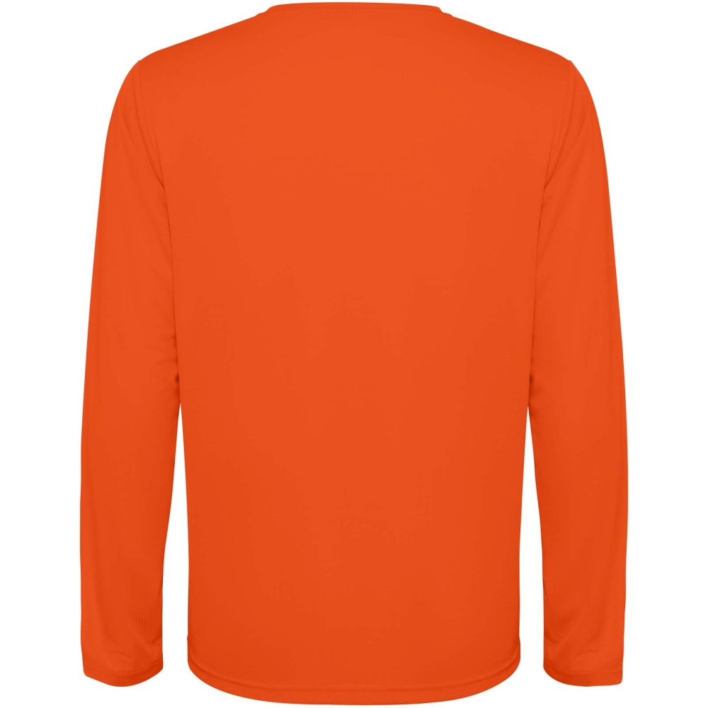 Kids long-sleeve unisex technical t-shirt. Collar with matching seams. Back hem slightly longer than the front. Side seams shifted forward.