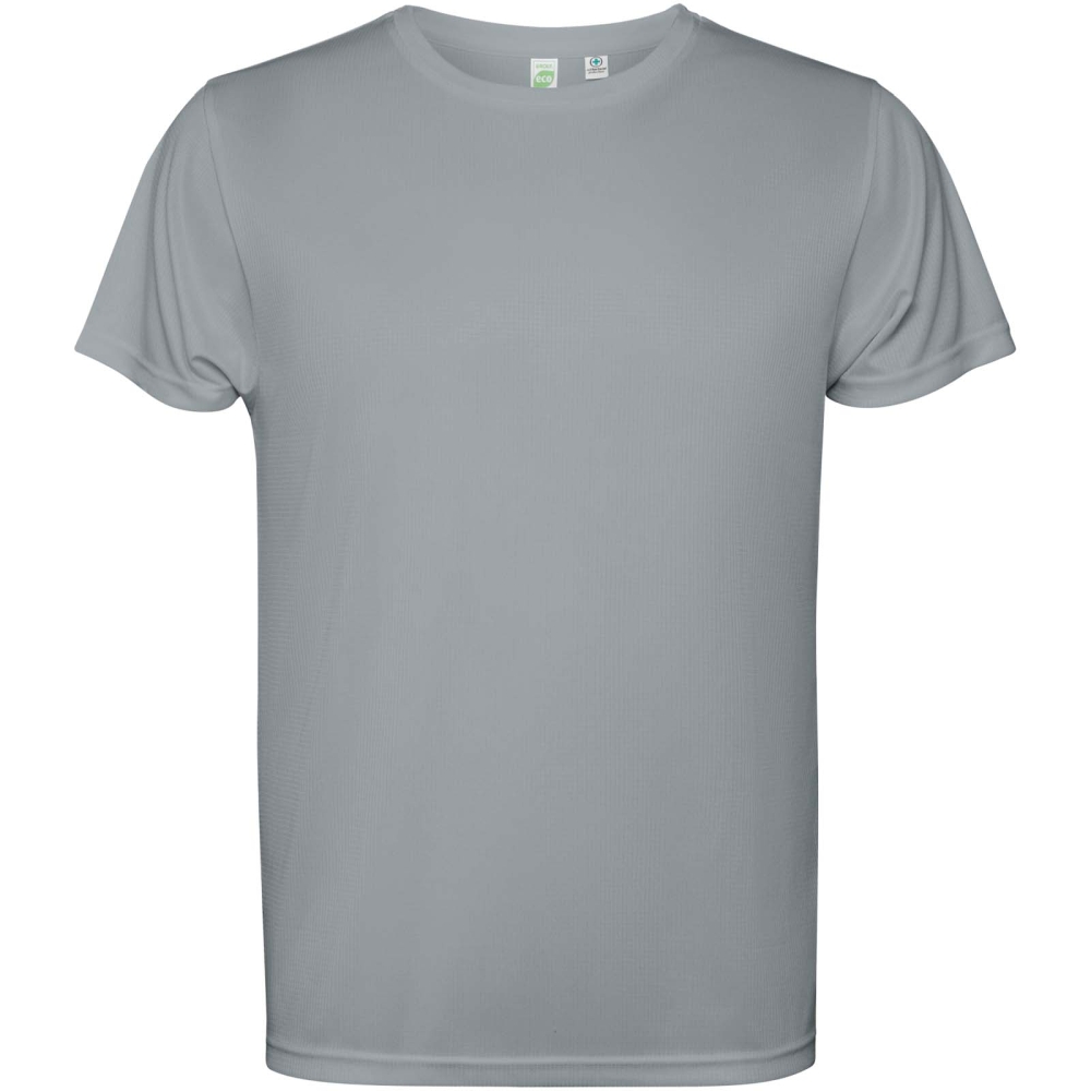 Short-sleeved technical t-shirt for men. Collar with matching seams. Back hem slightly longer than the front. Side seams shifted forward.