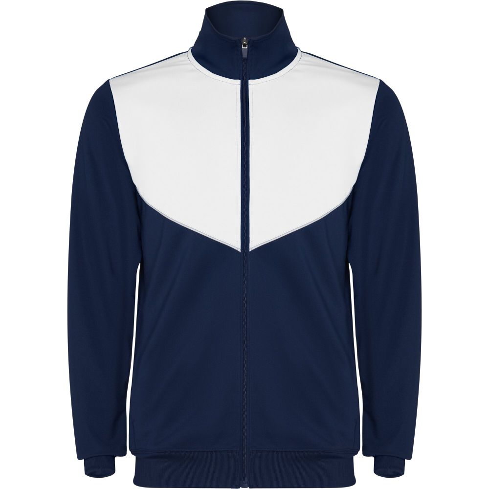 Tracksuit in lightweight and elastic fabric. Jacket with contrasting colour and sewing trims on chest. High collar with contrasting seams. Central front zip. Side pockets. 2x2 ribbed cuffs and waist. Trousers with elastic waistband and drawstring. Contrasting side piece with sewing trim. Zipped hem. Interlock knit of 100% Polyester, 225 g/m2.