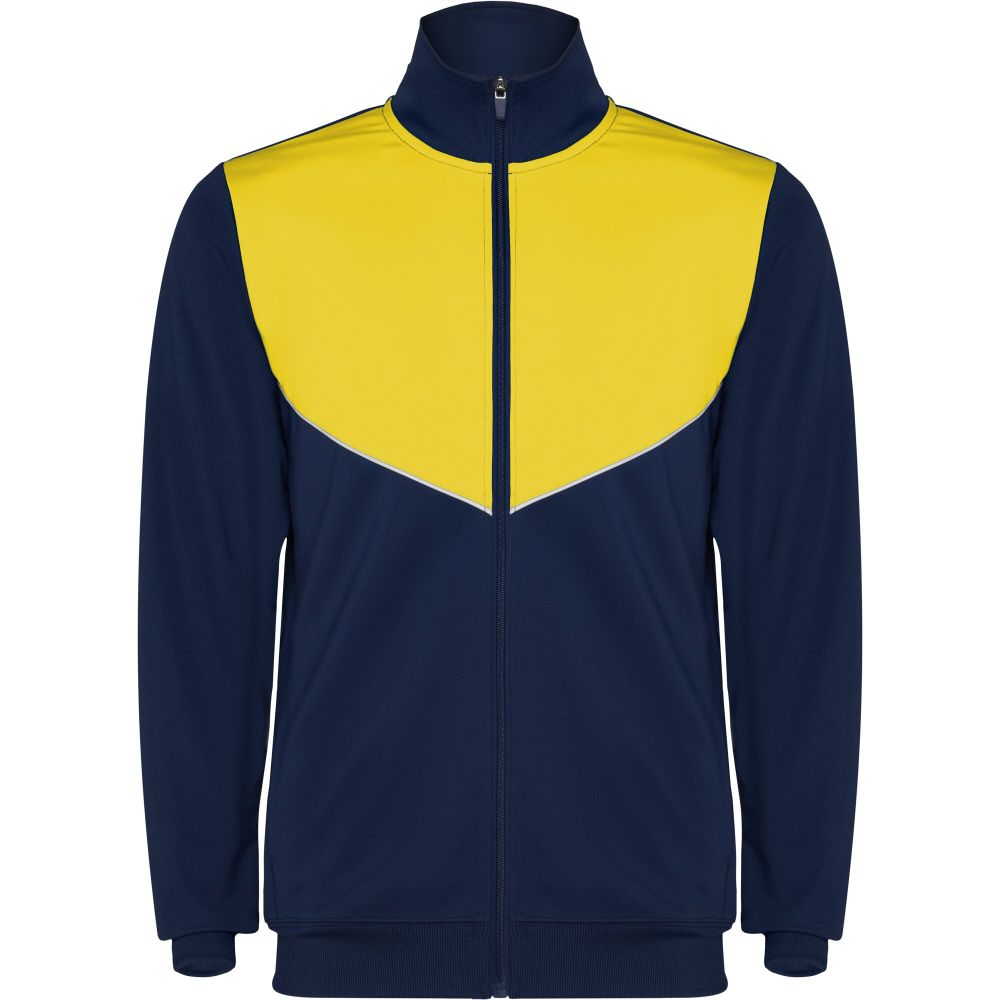 Tracksuit in lightweight and elastic fabric. Jacket with contrasting colour and sewing trims on chest. High collar with contrasting seams. Central front zip. Side pockets. 2x2 ribbed cuffs and waist. Trousers with elastic waistband and drawstring. Contrasting side piece with sewing trim. Zipped hem. Interlock knit of 100% Polyester, 225 g/m2.