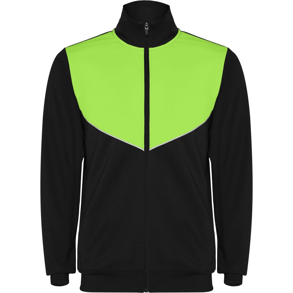 Tracksuit in lightweight and elastic fabric. Jacket with contrasting colour and sewing trims on chest. High collar with contrasting seams. Central front zip. Side pockets. 2x2 ribbed cuffs and waist. Trousers with elastic waistband and drawstring. Contrasting side piece with sewing trim. Zipped hem. Interlock knit of 100% Polyester, 225 g/m2.