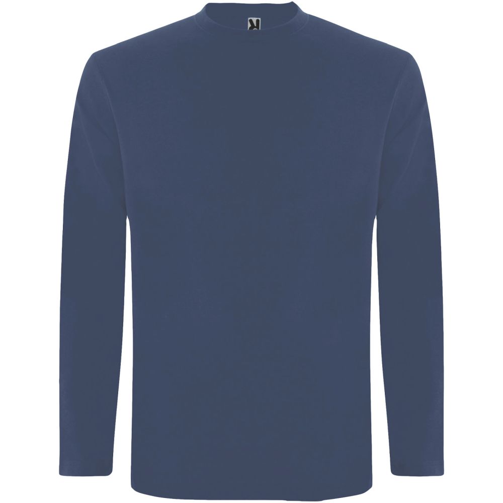 Long-sleeve t-shirt in tubular fabric and 4-layer crew neck. Reinforced covered seams in collar and shoulders. No cuffs. Removable label. Tubular design in adult sizes and side seams in kids sizes. The model is 185 cm and is wearing size L.